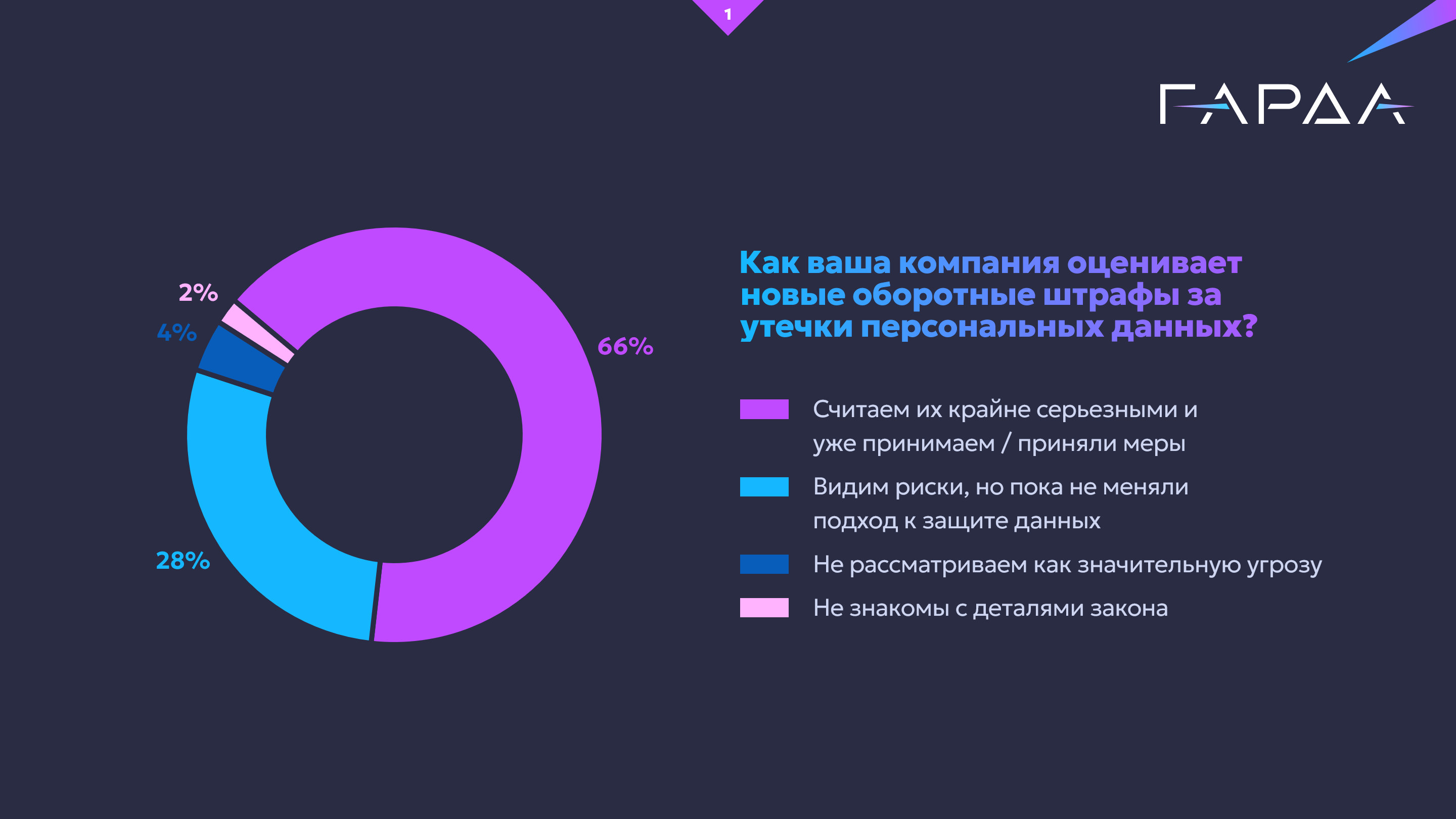 Большинство компаний восприняли новые оборотные штрафы за утечки персональных данных всерьез: 64% участников исследования уже усилили защиту или внедрили новые меры для обеспечения безопасности данных. Еще 30% осознают риски, но пока не пересмотрели подходы. Лишь 5% не считают штрафы значимой угрозой. Крупный бизнес наиболее серьезно отнесся к изменениям и уже принял меры.