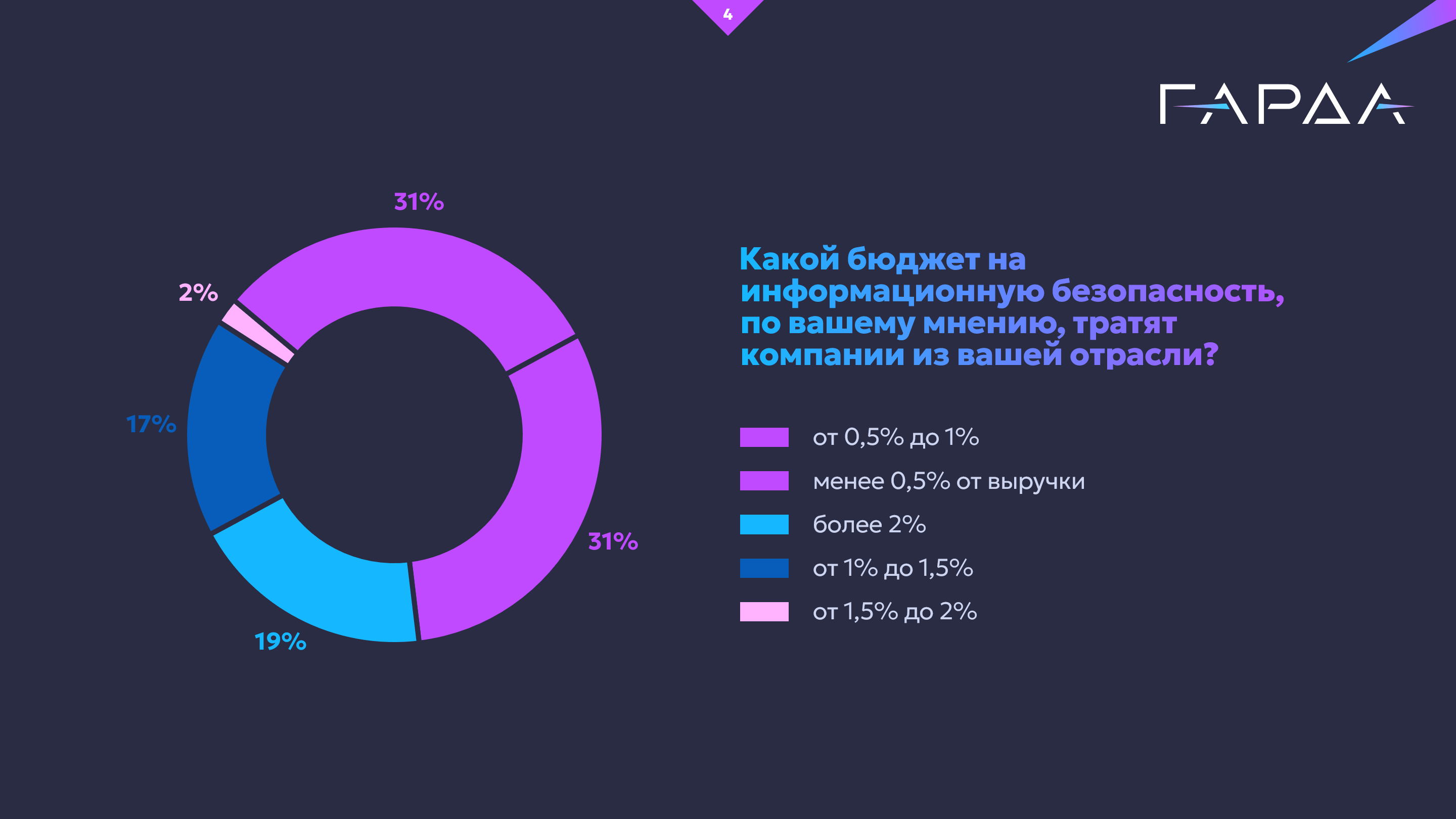 «Исследование показывает сдвиг в восприятии информационной безопасности как части финансовой стратегии компании. Если раньше многие воспринимали затраты на защиту данных как издержки, то теперь они видят прямую зависимость между уровнем инвестиций и устойчивостью бизнеса. Сегодня треть компаний тратит на ИБ менее 0,5% от выручки, но уже 29% готовы увеличить расходы свыше 2%, понимая, что штрафы и последствия утечек могут оказаться гораздо серьезнее», – отметила Анна Кирсанова, директор по маркетингу группы компаний «Гарда».